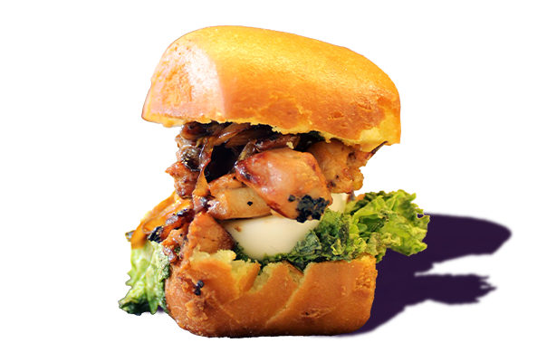 Chicken sautéed in shallot with caramelized onion, served in a crispy mantou.
